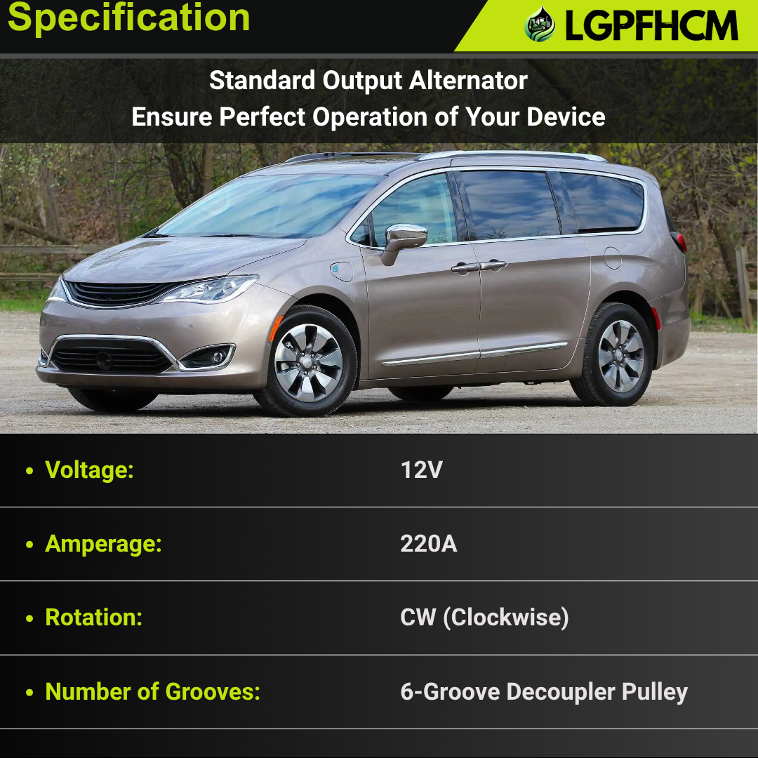 421000-7191 220A 12V Alternator 6-Groove Pulley Fit For Chrysler Pacifica 2017-2020 Voyager 2020 For Ram ProMaster 1500 2020 ProMaster 2500 2022-2023 ProMaster 3500 3.6L 2022-2023