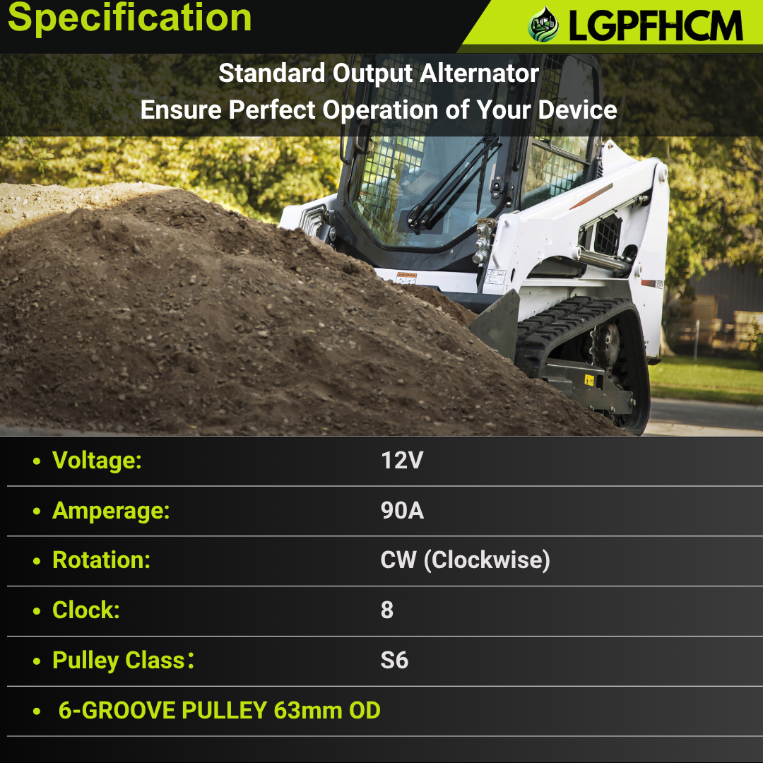 7015581 400-40137 12V 90A Alternator Compatible with Bobcat Loader A770 S450 S510 S550 S630 S590 S740 T595 T750 Excavator E32 E35 E45 E50 E85 Work Machines 5600 5610 IR/LF # 425581