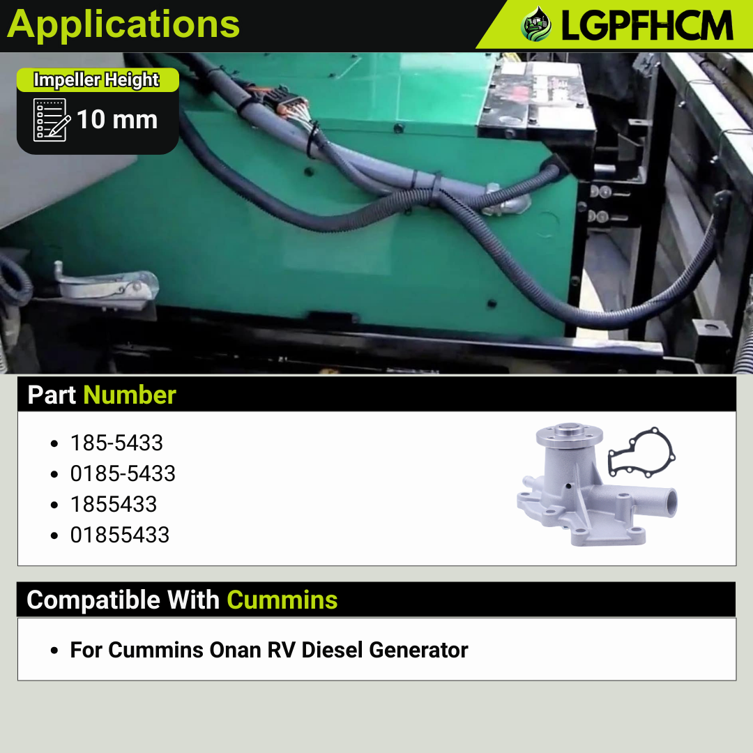 0185-5433 Engine Water Pump with Gasket Compatible With Cummins Onan RV Diesel Generator #185-5433 01855433 1855433 10mm