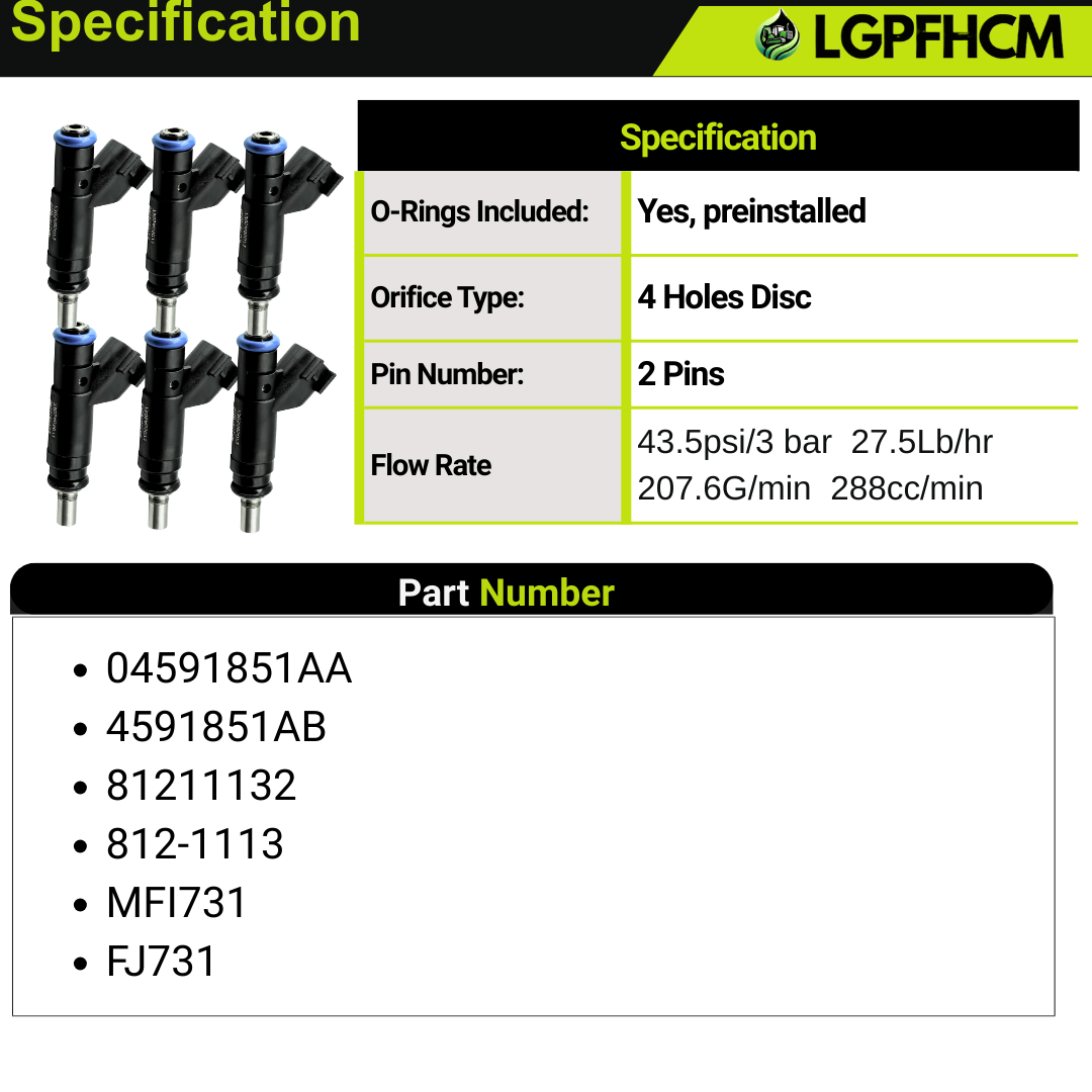 FJ731 4591851AB 8pcs Fuel Injectors for Dodge 4.7L Ram-1500 2500 Durango 2008-2009 for Jeep 5.7L Grand Cherokee 2005-2007 For Ram Dakota For Chrysler 300 Aspen # 04591851AA