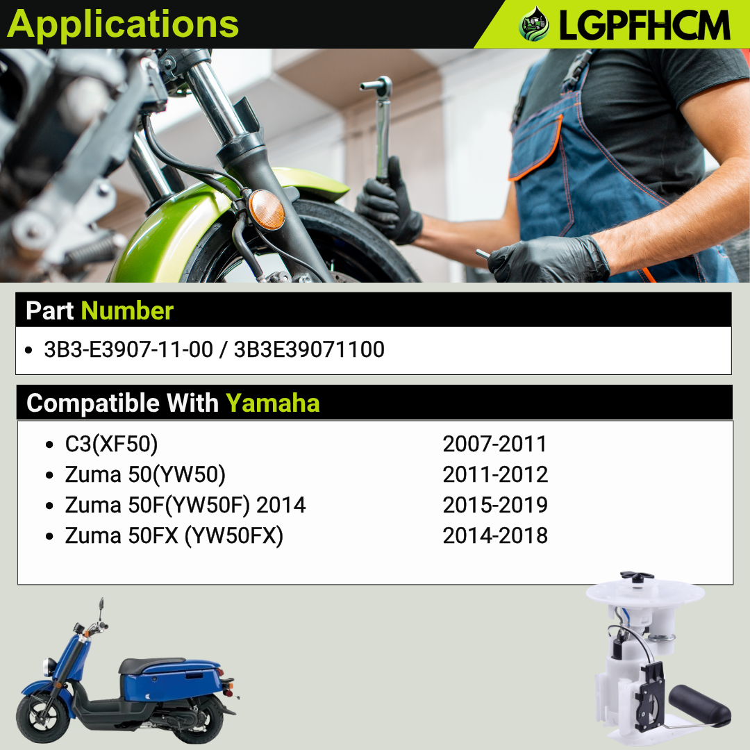 3B3-E3907-11-00 Fuel Pump Assembly Compatible With Yamaha C3(XF50) 2007-2011 Zuma 50(YW50) 2012-2013 Zuma 50F(YW50F) 2014-2019 Zuma 50FX (YW50FX) 2014-2018 #3B3E39071100