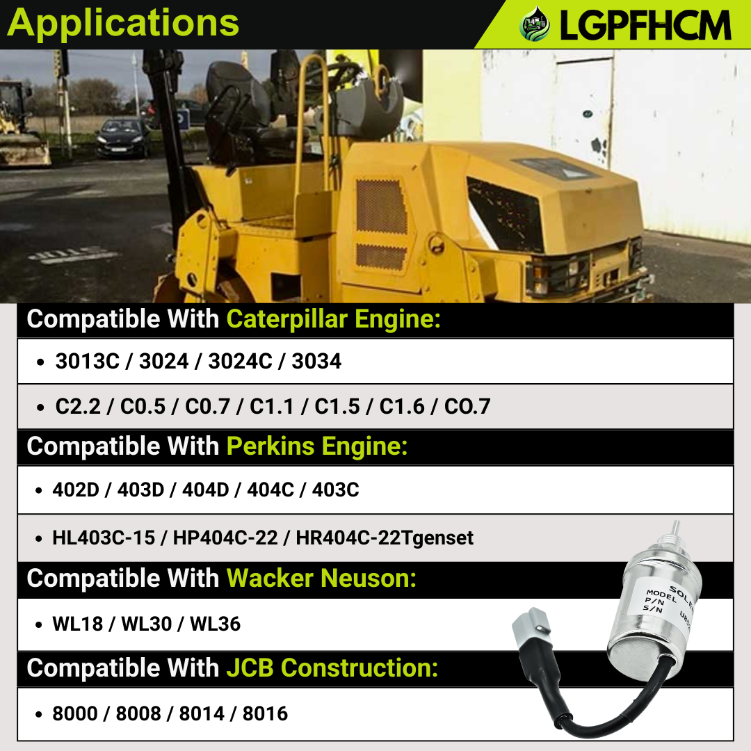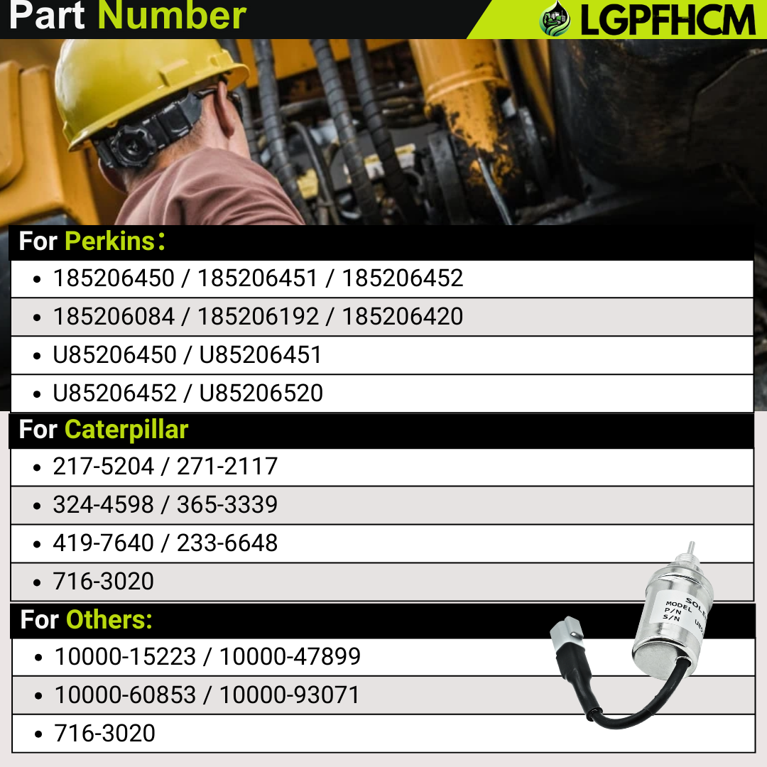 12V 185206452 U85206520 Fuel Stop Shutoff Solenoid Valve Compatible with Perkins 402D 403D 404D 404C 403C HL403C-15 HR404C-22T For Caterpillar For Cat Engine 3011C 3013 3013C 3024C 3034 216 226 228 232 242 # U85206452 U85206451 185206451 185206450