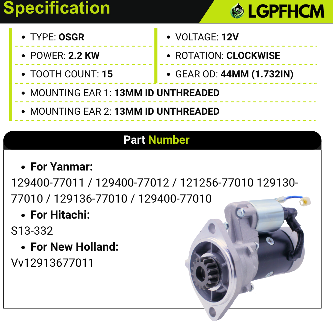 S13-332 VV12913677011 YM129400-77012 Starter Compatible with Komatsu Excavator Pc35 Pc40 Pc50 Sk815 Sk714 4D88e 12 Volt S13-332 Vv12913677011 Ym12940077012, 129136-77011 S13332, 12913677011