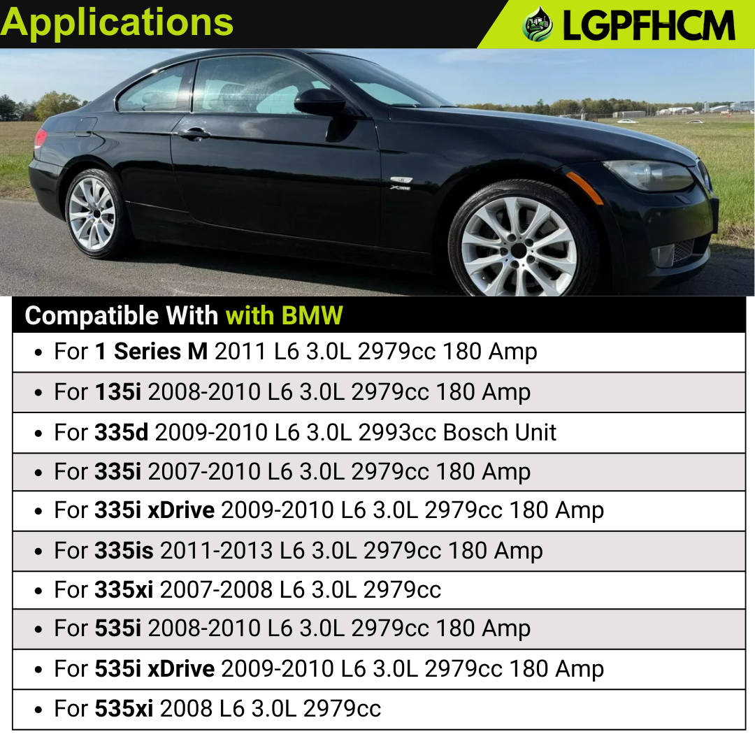 12317558219 180A Alternator for BMW 135i 3.0L 2008-2010 335i 2007-2010 335is 2011-2013 335xi 2009-2010 535i 2008-2010 535xi 2008 # 12317558220 0121715016 0121715116 11302N